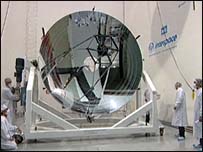 Um novo telescópio está sendo desenvolvido pela Agência Espacial Européia, na Alemanha, para obter imagens nunca vistas dos estágios iniciais da formação de estrelas. Com essas imagens cientistas da missão Herschel esperam saber mais sobre a criação do universo. A maior parte do universo está escondida, fora do alcance da visão. A luz emitida por essas partes do cosmos tem a forma de ondas infravermelhas que são impossíveis de se enxergar com um telescópio convencional. O novo telescópio pode detectar ondas infravermelhas e será parte central de um observatório espacial que está na fase final de construção e será lançado no ano que vem. O telescópio, o maior deste tipo, irá identificar as ondas infravermelhas, e a informação será processada por equipamentos a bordo do observatório. A missão está prevista para durar três anos e vai operar a 1,5 milhão de quilômetros da Terra. |