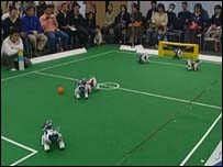 O Encontro de Robôs Atletas 2007 reuniu cententas de jogadores humanóides no último sábado, em Tóquio, no Japão. Uma partida de futebol foi a principal atração do evento. A disputa contou com a participação de máquinas de diferentes formas, de humanóides a cães. Alguns robôs eram acionados por controle remoto e outros, pré-programados, respondiam a qualquer movimento da bola. Muitos robôs bípedes tombaram com freqüência durante o jogo de futebol. Os que tinham forma de cães jogavam de quatro patas. O organizador do torneio, Ken Senoh, professor de ciência moderna e tecnologia, comparou as máquinas às pessoas. "Hoje, eles ainda são bebês em relação as suas capacidades físicas. Mas é uma questão de tempo", disse o pesquisador. Senoh aposta que, no futuro, os robôs poderão eventualmente correr mais rápido do que os humanos. "É o mesmo caminho dos computadores pessoais, que eram lentos e sem capacidade de igualdade até poucas décadas atrás", concluiu o organizador. |