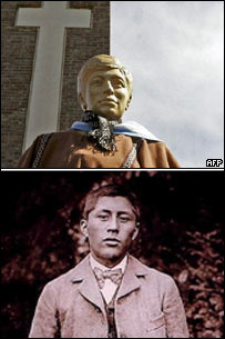 Dezenas de milhares de pessoas se reuniram neste domingo na pequena cidade de Chimpay, no sul da Argentina, para uma cerimônia em que a Igreja Católica beatificou um índio. A beatificação acende a esperança de muitos argentinos de ver o índio mapuche Ceferino Namuncura, morto na Itália em 1905, tornar-se santo. Fiéis contam que, em sua infância, o representante mapuche escapou milagrosamente de se afogar em um rio. O índio foi vencido pela tuberculose aos 18 anos, quando estudava na Europa para se tornar padre. Desde então, sua figura vem atraindo a devoção de argentinos pobres ou descendentes de indígenas. O pedido de beatificação foi feito em 1945. Há sete anos, investigadores da Igreja Católica atribuíram a Namuncura o milagre de curar uma de suas devotas de câncer de útero. Nova estratégia Fiéis acudiram de todas as partes do país para ver a cerimônia de beatificação conduzida pelo secretário de Estado do Vaticano, Tarcísio Bertone. Ele é o segundo indígena beatificado nas Américas, depois do mexicano Juan Diego, hoje santo. Para que o índio mapuche seja canonizado, é necessária a aceitação de outro milagre seu.