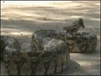 A guarda florestal indiana vem resgatando cobras do tipo píton de áreas residenciais do sul do país. A caça dos animais é proibida em várias partes da Índia, mas as pítons continuam a ser dizimadas por causa do grande valor de mercado de suas peles. A polícia prendeu recentemente, no Estado indiano de Kursi, uma gangue que comercializava peles avaliadas em mais de US$ 5 mil. As pítons são comuns por toda a Índia, especialmente nas florestas do sul do país. A polícia diz que, até agora, cerca de 270 animais já foram devolvidos à natureza e que a operação vai prosseguir. |