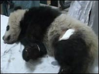 Veterinários no norte da China operaram no sábado um urso panda gigante que foi encontrado em uma reserva florestal com uma fratura na região da bacia. "Faremos uma cirurgia de reposição usando uma placa de aço para ajudar na recuperação do osso", disse o veterinário Zhao Feng, antes da cirurgia. O urso foi encontrado na província de Zhouzhi no último dia 12. Os veterinários dizem que Cheng Cheng, como ele foi batizado, deve se recuperar totalmente dentro do prazo de um mês. Os 25 pandas da reserva florestal de Zhouzhi se alimentam de uma floresta de bambus de 1,3 mil hectares. Os pandas gigantes são umas das espécies mais ameaçadas do mundo. Calcula-se que existem menos de 1,6 mil animais da espécie vivendo na natureza, a maioria nas montanhas do sudoeste chinês. |