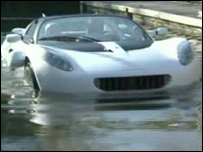 Inspirado na Lotus de James Bond em O Espião que Me Amava, o fã de 007 e inventor suíço Frank Rinderknecht criou o seu protótipo Squba, capaz de andar no asfalto, na água ou debaixo dela. Movido a três motores elétricos, um para terra e dois para a água, que possibilitam passeios submarinos a até dez metros, o veículo não produz qualquer emissão de gases. O automóvel permanece conversível debaixo d'água por motivos de segurança, segundo o fabricante. O oxigênio é fornecido por duas máscaras ligadas a um cilindro de ar comprimido, semelhante a um aqualung. No asfalto, o carro atinge a velocidade máxima de 120 quilômetros por hora e, no melhor estilo Bond, não precisa de motorista para dirigir. Para isso, Rinderknecht adaptou uma tecnologia que utiliza sensores de raio laser como olhos para manter o carro na rua e evitar acidentes. O protótipo, que custou mais de 1 milhão de euros, vai ser apresentado ao público no mês que vem, na Feira do Automóvel de Genebra. Não existem planos de fabricação em massa, mas o inventor Rinderknecht avalia que o veículo sairia por menos que um Rolls Royce. |