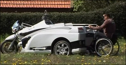 A Martin Conquest 1200 é uma moto fabricada em série exclusivamente para deficientes físicos. Usuários de cadeiras de rodas podem entrar até uma plataforma automática. Todos os controles da moto são manuais. O projetista do veículo é o holandês Peter van Nooy, que perdeu os movimentos da cintura para baixo em um acidente de moto há 18 anos. Van Nooy desenvolveu o projeto em colaboração com a empresa britânica Martin Conquest. "Como essa moto é para cadeiras de roda, eles precisavam de alguém para ajuda-los a desenvolvê-la direito, porque seria muito difícil para alguém que não é deficiente fazer isso", diz o holandês. A Martin Conquest ainda não conseguiu encontrar um comprador na Holanda até o momento, já que a moto custa o equivalente a quase R$ 130 mil, um preço muito mais alto do que o cobrado na Grã-Bretanha, onde o modelo está venda desde 2005. |