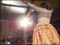 Um grupo de mulheres indígenas na Bolívia achou um meio de combater a discriminação que sofrem no país: a luta livre. Lideradas por Carmen Rosa, ‘La Campeona’, elas estabeleceram há poucos meses uma organização de mulheres lutadoras, como uma forma de ‘vingança e vitória’ no ringue. “As mulheres indígenas já foram muito humilhadas, muito discriminadas, e isso me deu inspiração para ser uma lutadora. Para mostrar para as pessoas, não somente para os bolivianos, mas para o mundo todo, que uma mulher pode fazer o que os homens fazem, os esportes que os homens fazem,” diz Carmen Rosa. Além de cuidar das suas famílias e exercer profissões como costureiras ou cozinheiras, as ‘Cholitas Luchadoras’, como são conhecidas, praticam luta livre no ringue duas vezes por semana, fazendo o mesmo treinamento que fariam os homens. Mantendo, no ringue, suas vestimentas tradicionais, elas estão se tornando estrelas nacionais. Mas muitas tiveram que enfrentar obstáculos duros como o preconceito e o machismo que reinam na sociedade boliviana. “O sangue de lutador corre em minhas veias, apesar de meu pai não concordar. Na primeira vez que subi em um ringue, meu pai me bateu e quebrou meu nariz, Porque? Porque não queria que uma mulher, que sua filha mulher estivesse sobre um ringue,” conta a lutadora Yolanda, ‘La Amorosa’. As ‘deusas do ringue’ realizam espetáculos semanais, com lutas repletas de saltos atléticos e dos tradicionais 'golpes sujos'. |