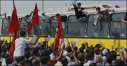 Israel libertou na manhã desta segunda feira 198 prisioneiros palestinos para demonstrar sua "disposição" em relação às negociações de paz. A libertação dos prisioneiros, principalmente de dois que estiveram envolvidos na morte de israelenses, gera polêmica em Israel, e coincide com uma visita da secretária americana de Estado, Condoleezza Rice, à região para negociar um plano de paz. Os homens foram entregues à Autoridade Palestina no ponto de checagem próximo à cidade de Ramallah, na Cisjordânia. Em Bitunia, os prisioneiros foram recebidos por centenas de palestinos e de lá foram ao quartel general da Autoridade Palestina em Ramallah, onde se encontraram com o presidente palestino Mahmoud Abbas. Entre os prisioneiros libertados se encontram dois – Mohammed Ibrahim Abu Ali, preso desde 1980, e Said al-Attaba, desde 1977 – cuja libertação provoca especial polêmica, pois, segundo o governo de Israel, "têm as mãos manchadas de sangue" por se envolver na morte de israelenses. O gabinete do primeiro ministro de Israel, Ehud Olmert, divulgou uma nota afirmando que "os prisioneiros libertados pertencem a facções que apoiam o presidente palestino Mahmoud Abbas e a libertação é um gesto para intensificar o diálogo com parceiros que tem um compromisso com a diplomacia e se opõem ao terrorismo". "A libertação dos prisioneiros demonstra a disposição por parte de Israel de fazer concessões dolorosas a fim de promover as negociações de paz", concluiu a declaração de Olmert. O ministro da Autoridade Palestina, Ashraf El Ajami, responsável pela questão dos prisioneiros, declarou que "a libertação é um passo positivo". "Espero que em breve Israel liberte mais milhares de prisioneiros", disse o ministro. Mais de 11 mil palestinos permanecem detidos nas prisões israelenses. Polêmica Politicos de partidos da direita em Israel criticaram a decisão do governo e afirmaram que a libertação dos prisioneiros é "um ato de fraqueza, que vai incentivar ainda mais o terrorismo". A Organização das Vítimas do Terror entrou com um recurso no Supremo Tribunal de Justiça contra a libertação dos prisioneiros, mas o recurso foi rejeitado pela Corte. Porém, nem todos os israelenses que foram vítimas de atentados por parte de palestinos se identificam com a posição dessa organização. A professora de Literatura da Universidade de Tel Aviv Nurit Peled Elhanan perdeu sua filha, Smadar, de 14 anos, em um atentado suicida cometido em Jerusalém em 1997.