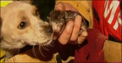 O cachorro Leo arriscou a vida para proteger quatro filhotes de gato presos em uma casa em chamas, em Melbourne, na Austrália. Quando o incêndio começou, a família que mora na casa e um de seus cães conseguiram escapar, deixando os outros animais para trás. Os bombeiros encontraram Leo cuidando dos filhotes, que estavam em uma caixa de papelão, em um dos quartos da casa. O cachorro já tinha perdido a consciência quando os bombeiros o tiraram da casa. O animal teve que ser reanimado com massagem cardíaca, água e oxigênio, antes de reencontrar os filhotes. |