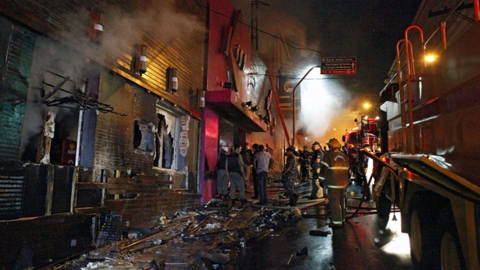 A casa noturna gaúcha foi atingida por um incêndio, causado, segundo testemunhas, por sinalizadores usados pela banda que tocava no local.
