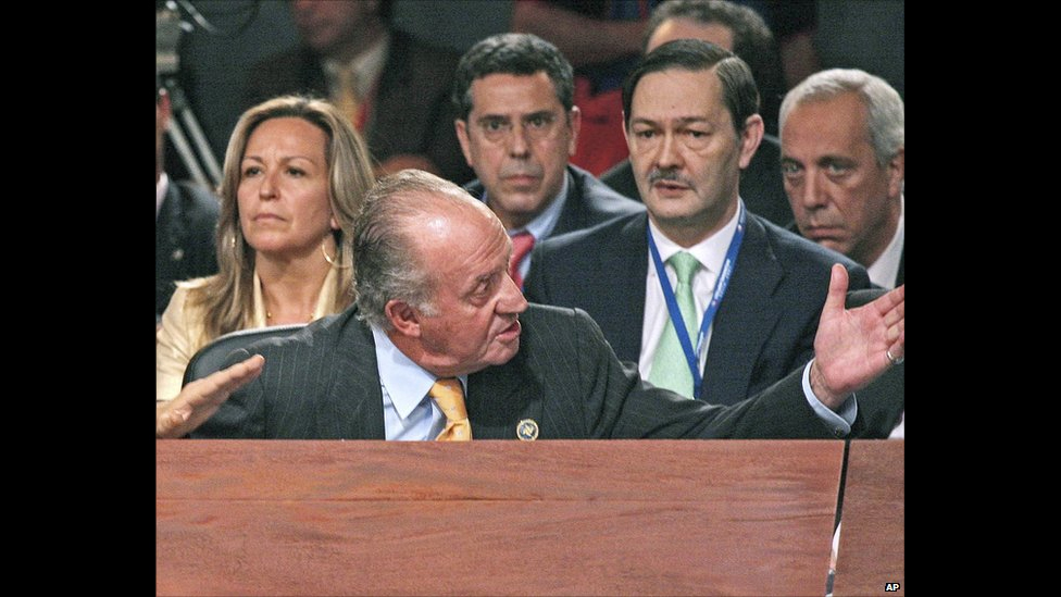 - Um incidente envolvendo Chávez e o rei Juan Carlos da Espanha marcou a Cúpula Ibero-Americana em Santiago, no Chile, em 2007. Irritado com o presidente venezuelano, que havia chamado o então primeiro-ministro espanhol José María Aznar de fascista, o rei proferiu a agora famosa frase: "Por que não te calas?".