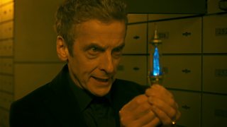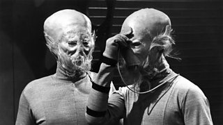When Psi attempts to gain the Teller’s attention by stating, ‘every famous burglar in history is hiding in this bank right now in one body!’ we see a stream of villains, each individual appearing very briefly. These include several aliens who have previously featured in Doctor Who such as a Sensorite, a member of the Slitheen family, the Gunslinger, an Ice Warrior and a Terileptil. Although the Terileptils have not had a major appearance since their debut story, The Visitation, in 1982, they were mentioned more recently in The Pandorica Opens and The Time of the Doctor.