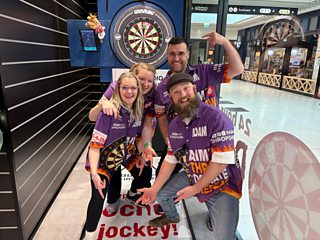 On Thursday 19 March from 9am, Adam Green, Carlie Swain, Michaela Wylde and Tim Barnes, from the BBC Radio Shropshire breakfast show, threw darts for twenty four hours in Telford Town Shopping Centre.