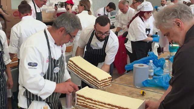Chefs set a new world record on the world's longest tiramisu. The portions will be sold to raise money for foodbanks in London.