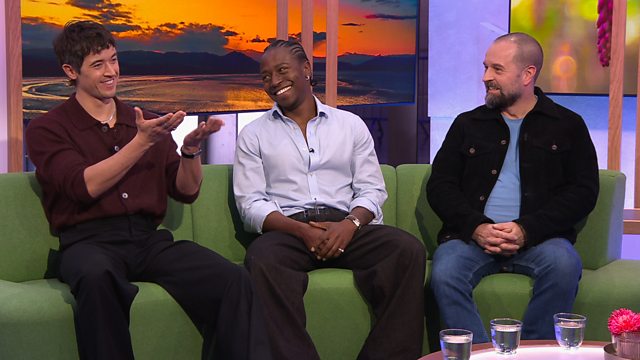Alex Jones and Clara Amfo are joined by singer Alfie Boe and stars of Bafta nominated film, Wasteman, David Jonsson and Tom Blyth.