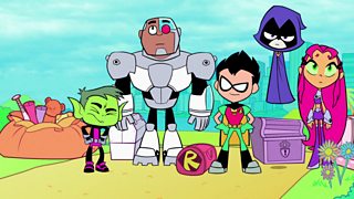 Beast Boy and Cyborg try a new way of eating - no chewing!