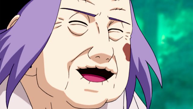 Teams Kakashi take a short rest. Granny Chiyo watches Naruto dozing off and is reminded of Sasori as a child. The pursuit resumes, and when Chiyo wonders why Naruto puts such effort into resuing Gaara