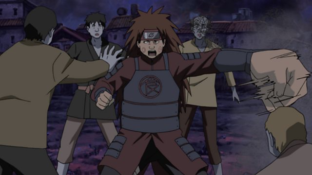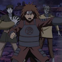 In order to stop the impending disaster, Asuma rushes toward the electric generator system. There he sees the Guardian Shinobi Twelve who have come to life once more through Revival Jutsu after their graves were robbed. Furido’s intent is to use the Lightning Style Jutsu of four of the Guardian Shinobi to burn down Hidden Leaf Village. Sakura and Yamato arrive to help, and Asuma leaves the duo to deal with the four Guardian Shinobi while he battles Kitane. Meanwhile, Naruto tries to stop Sora from going to Furido, but the kunoichi Fouka stands in his way.