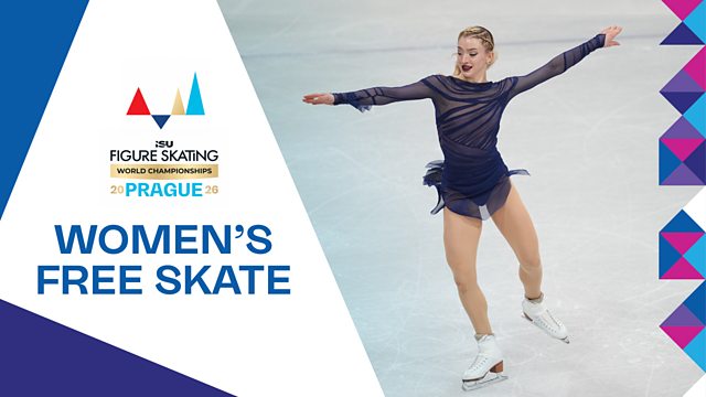 Coverage continues from the 2026 World Figure Skating Championships in Prague, featuring the women's free skating event.