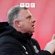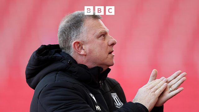 Stoke City manager Mark Robins speaks to Mark Elliott following the 3-3 home draw with Ipswich Town.