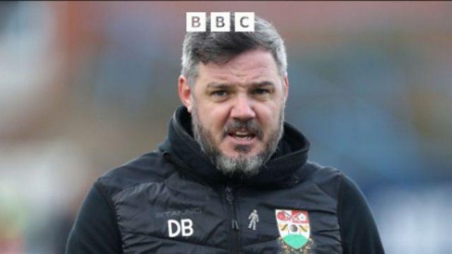Barnet boss Dean Brennan speaks to Craig Wakeling after a 3-1 win at Milton Keynes.