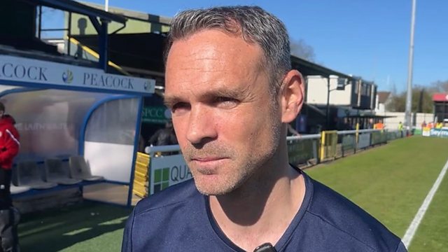 Woking interim boss Craig Ross reacts to the 3-2 win over Aldershot Town