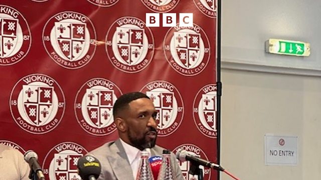 Jermain Defoe speaks to Robin Grey after taking the Woking job.