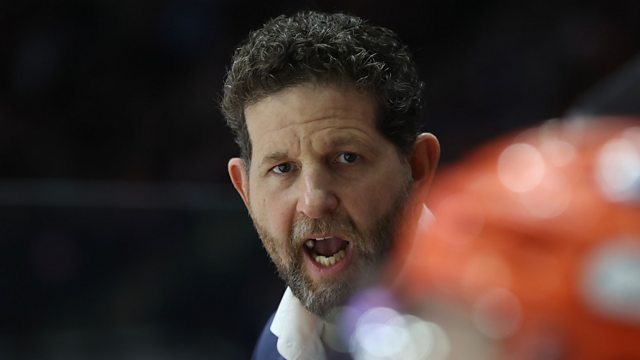 Sheffield Steelers head coach Aaron Fox speaking to Peter Spencer, after their 8-1 win over Glasgow Clan.
