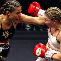 Caryl James, Steffan Leonard a Dafydd Pritchard yn trafod gornest Lauren Price