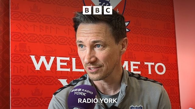 York City manager Stuart Maynard speaking to David Ward, ahead of their final home game of the regular season against Yeovil.