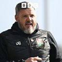 Barnet boss Dean Brennan reacts to a 2-1 win at Notts County