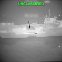 (Photo: Projectile approaches what U.S. Central Command (CENTCOM) says is an Iranian naval vessel, during strikes that included attacks on mine-laying vessels, at a location given as near the Strait of Hormuz, amid the U.S.-Israeli conflict with Iran, in this screen grab from video released March 10, 2026. Credit: CENTCOM/REUTERS)