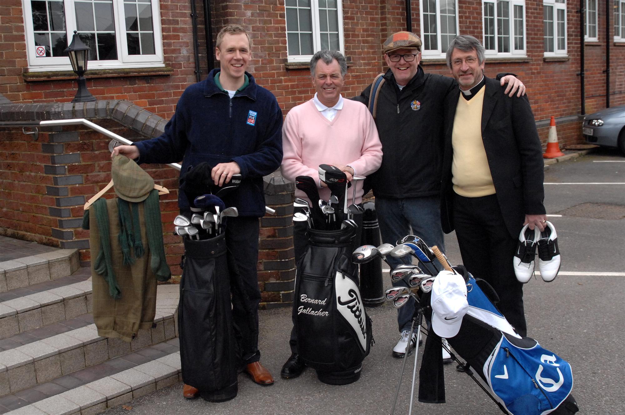 The dream team (left to right: Jonny Saunders, Bernard Gallacher, Chris Evans Rev'd Rob Gillion) before they tee off