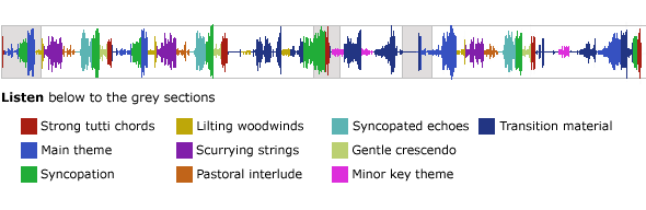 This analysis focuses on the first movement of the symphony, using waveform graphics from audio recordings to illustrate length, structure, dynamics etc.
