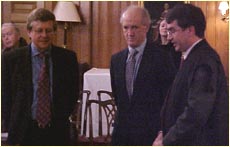 | Both parties discuss after the conclusion with Sir Franklin Berman QC. |