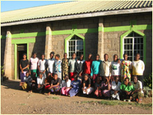 All the girls outside the Full Gospel Church of Kenya in Narok. The church is just across the walled compound from the large dormitory hut that they all sleep in.