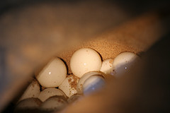 During the nesting season (Mar-Jul – this is approximate and will vary slightly with latitude) Leatherbacks lay approximately 6 clutches of eggs spending 10 days at sea between nesting events. Each clutch contains approximately 80 eggs.