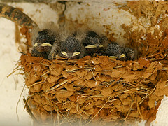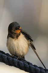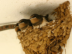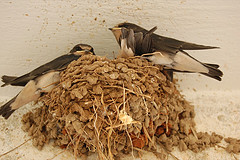 Swallows are most likely to be seen where there are plenty of small insects on which they feed. They are particularly fond of open country with access to water and quiet farm buildings where they can nest. They nest mainly on ledges in barns, outhouses, old buildings, or under bridges, so usually near human habitation. Large reedbeds in late summer and early autumn can be good places to look for pre-migration roosts.