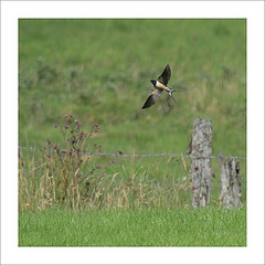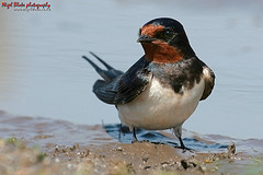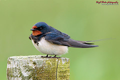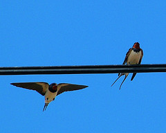 Swallows are small birds; about 7-8in in length (17-20cm), with a wing span reaching 12-14” (30-35cm). They are extremely agile and graceful in flight and spend most of their time on the wing, twisting and turning to catch airborne insects. You often see them either circling gracefully overhead, or swooping low over the water or ground, snatching up food. Like house martins and swifts, swallows feed on the wing hoovering up insects in their large gaping mouths, like flying vacuum cleaners! The long tail is put to good use whilst they briefly stall in flight, intercept an insect and move on. Although they spend much of their time on the wing, you can also see swallows perching on wires and other prominent perches