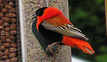 Sut daeth o i ymweld a gardd yn Nhrefor ? Wel, mae hwn yn aderyn poblogaidd iawn fel aderyn sioe ac fel aderyn caets, a'r tebygrwydd yw ei fod wedi dianc o gasgliad rhywun.