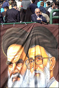Iranul are un Preşedinte şi un Parlament aleşi prin vot direct, dar aceste autorităţi laice se conduc după legea islamică, iar deciziile lor pot oricând să fie anulate de liderul spiritual suprem şi de ierarhia clericală, tipică islamului şiit. Ayatolahul Homeini a murit în 1989 şi a fost înlocuit de succesorul său desemnat prin testament, Ayatolahul Hamenei, care era preşedinte al Iranului din 1981. Următorii doi preşedinţi ai Iranului Ali Akbar Rafsanjani (1989 -1997) şi Mohamed Hatami (1997 - 2005) au fost ambii clerici. Dar nici unul dintre ei nu a atins gradul de devotament faţă de ideile lui Homeini ca actualul Preşedinte ales acum câteva luni, Mahmud Ahmadinejad. Acesta a dispus înlocuirea de pe toate clădirile din Teheran a fotografiilor sale oficiale cu portretele Ayatolahului Homeini. De dincolo de mormânt, conducătorul Revoluţiei islamice este în continuare lider al Iranului, chiar dacă prin interpuşi. | ||||||||||||||||||||||||||||||||||||||||||||