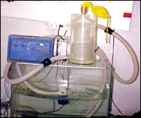 Prin centrifugă circulă un volum suficient de mare de apă ca să asigure oxigen unui scafandru în condiţii obişnuite, aproximativ 200 de litri pe minut. Aerul extras este apoi înmagazinat într-un rezervor. În momentul de faţă aparatul, brevetat deja în Europa şi Statele Unite, există doar în laborator. Dar inventatorul a anunţat că scopul final este obţinerea unor asemenea branhii artificiale de mici dimensiuni, asemănătoare unor veste pe care le va putea purta orice scafandru. Aparatul a intrat deja şi în atenţia constructorilor de submarine şi de laboratoare submarine, care sunt interesaţi să utilizeze aceste aparate. Ca în cazul oricărei invenţii, există însă şi sceptici, cei mai mulţi din rândul scafandrilor.