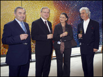 Emil Ciocoiu, care trăieşte în Germania, îi adresează comisarului câteva cuvinte în finlandeză, mulţumindu-i pentru găzduire. Tablourile sunt în general de mari dimensiuni, foarte potrivite pentru spaţiile instituţionale, mai greu de închipuit într-o sufragerie. Stilul - pointillist abstract. Titlul expoziţiei - Omagiu Viitorului. Cel mai impresionant e un triptic reprezintând o galaxie, parcă în plină expansiune... Cu puţină imaginaţie, înfăţişează momentul aderării României. La stânga - ca o stea între stele, la dreapta - drept într-o gaură neagră. Toate opţiunile sunt deschise. Luna trecută, Comisia a găzduit o expoziţie de fotografii, înfăţişând faruri de pe coasta Croaţiei. Pentru ambele ţări, o operaţiune de lobby artistic reuşită. Când era comisar pentru extindere, Guenter Verheugen organiza şi el expoziţii de artă din ţările candidate, dar numai în propriul birou, pentru că la vechiul sediu al Comisiei nu era loc de aşa ceva. "Problema" Prodi În drumul spre ieşire, trec pe lângă un şir de portrete ale foştilor preşedinţi ai Comisiei Europene, încheiat cu Romano Prodi. Rezultatul alegerilor din Italia confirmă parcă zicala că fiecare popor are liderii pe care-i merită. La Bruxelles, nici unul dintre candidaţi n-a lăsat o impresie prea bună. Numit de ziare "Problema Prodi," fostul şef al executivului european şi-a încheiat mandatul ţinând conferinţe de presă exclusiv în italiană, pentru ca era greu de înţeles în engleză sau franceză. Chiar pe limba lui, lui Romano Prodi îi venea greu să evite gafele. A început promiţând "o armată europeană," spre iritarea britanicilor şi a încheiat calificând pactul economic de stabilitate drept "stupid." Avea perfectă dreptate, dar momentul nu era de loc pe placul germanilor şi francezilor, cei care acum încalcă prevederile acestui pact pe care tot ei l-au impus. Credibilitatea politicienilor italieni a fost subminată şi mai dramatic de Silvio Berlusconi. Ca preşedinte în exerciţiu al Uniunii Europene, acesta a insultat un euro-parlamentar german, numindu-l gardian de lagăr de concentrare, s-a oferit să devină avocatul Rusiei privind drepturile omului, şi a scos din buzunar un petec de hârtie gol când trebuia să finalizeze Constituţia Europeană. Acum câteva luni, l-am reîntâlnit pe Romano Prodi în faţa Parlamentului European, mult mai calm şi mai vesel decât atunci când era preşedintele Comisiei Europene. Venea să le vorbească italienilor din Belgia despre platforma lui în alegeri, şi se pare că n-a fost în zadar. Italienii din străinătatea au oferit alianţei de centru stânga a lui Romano Prodi majoritatea în Senat, fără de care nu ar putea guverna. Puteţi să trimiteţi comentarii sau să-i adresaţi întrebări Oanei Lungescu, legate de rubrica ei săptămânală "În culisele Europei" la adresa rom.dept@bbc.co.uk. |