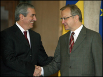 E clar totuşi că în clubul european, condiţiile se înăspresc. Tot la Strasbourg, cu doar o oră înaintea raportului privind România şi Bulgaria, Comisia Europeană a adoptat o altă decizie. Slovenia a primit lumina verde să adopte moneda unică la 1 ianuarie 2007, devenind a 13-a ţară din zona euro, în timp ce Lituaniei i s-a spus să mai aştepte. Motivul e rata inflaţiei: 2,7 % în Lituania, cu 0,1 % mai mare decât media celor trei ţări cu cea mai scăzută inflaţie din Uniunea Europeana, baremul stabilit de tratat. Câţiva ziarişti sloveni au aplaudat, dar politicienii lituanieni s-au simtit vexaţi. Dalia Grybauskaite, comisarul european pentru buget, fost ministru de finanţe al Lituaniei, şi-a acuzat colegii de dogmatism. Presa lituaniana i-a oferit Comisiei lecţii de aritmetică, spunând că dacă ar fi rotunjit rata inflaţiei în sus, ar fi ajuns la 2.7%. Majoritatea lituanienilor se opun însă adoptării monedei unice, temându-se de majorarea preţurilor. Sondajele arată rezultatul invers în Slovenia, unde majoritaea se mândreşte că o fostă republică iugoslavă va deveni primul stat fost comunist care intră în cel mai select club european. Coşarul bulgar Alaturi de câţiva colegi francofoni, particip la o dezbatere pentru radiodifuziunea belgiană despre raport. Cineva vorbeşte despre Logan ca un element care începe să schimbe imaginea României în Franţa. Prezentatorul citează la sfârşit un articol fascinant din presa belgiană. E vorba de o firma flamandă care şi-a deschis un birou lângă Sofia, de unde zeci de tineri bulgari telefonează în Belgia de dimineaţă până seara pentru a oferi coşari la preţuri reduse. Totul, într-o perfectă flamandă şi franceză, chiar cu accente regionale. Angajaţii au făcut cursuri intensive, unii chiar au vizitat Belgia. Câştigă între 200-250 de euro, mai mult decât un profesor de liceu. Mitul coşarului bulgar îl va înlocui oare pe cel al instalatorului polonez? Sau va purta noroc? Oana Lungescu aşteaptă întrebări şi comentarii pe adresa: rom.dept@bbc.co.uk Aş vrea să ştiu despre ce "coşari bulgari" e vorba în articolul Oanei Lungescu? Cred că în cazul dat, fiind sensul 1 DEX de etimologie bulgară, pluralul ar trebui sa fie coşare; coşari fiind "hornarii". Nu credeţi? Care limba o numiti Dumnevoastră "flamandă"? Fiind în Belgia în Flandra de vest vorbesc olandeza. Aş crede că mai corectă ar fi combinaţia "flamandă şi valonă" sau "olandeză şi franceză". |