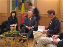 "Cetăţenii care deţin alte cetăţenii decât cea a Republicii Moldova, se vor bucura de facilităţi în privinţa vizelor ţărilor respective, prin Federaţia Rusă, prin Ucraina, prin România. Dar acei care au rămas, numai cetăţeni ai Republicii Moldova nu vor avea acces nici la o viză, nici într-o directie", a remarcat Preşedintele Voronin. Moldova a început discuţii tehnice cu Comisia Europeană pentru facilitarea vizelor, dar nu a primit o dată pentru începerea negocierilor propriu-zise. În schimb, Comisia a promis ca va deschide la Chişinau primul centru-pilot de coordonare consulară, astfel încât ambasada Germaniei sau Franţei să poată acorda vize pentru toate statele europene, fără a mai fi nevoie ca solicitantul să se deplaseze în afara Moldovei. Vladimir Voronin reclamă România la Bruxelles "E o propunere care ne satisface şi poate rezolva problema într-o mare măsură. Dar deocamdată sunt doar tratative, hotărâri concrete pe aceste chestiuni foarte importante nu avem", a spus preşedintele Vladimir Voronin. Potrivit unei oficialităţi de la Bruxelles, Vladimir Voronin s-a plâns lui Javier Solana că România întârzie semnarea tratatului de bază cu Republica Moldova. Şeful diplomaţiei europene a declarat după convorbirile cu Preşedintele Voronin că România are obligaţia morală de a avea relaţii normale cu ţările vecine. Uniunea Europeană doreşte la rândul ei ca Republica Moldova să aplice mai hotărât reformele politice, întărind independenţa magistraţilor în lupta împotriva corupţiei şi punând capăt practicilor pe care oficialii europeni le numesc abuzive în domeniul audio-vizual. | LEGĂTURI Frontiera cu Ucraina văzută din elicopter şi de aproape21 Iunie, 2006 | Ştiri Premierul Tarlev reclamă Rusia la Uniunea Europeană11 Aprilie, 2006 | Ştiri Monitori la graniţa Moldova-Ucraina pe segmentul transnistrean20 Septembrie, 2005 | Ştiri LEGĂTURI LA SITE-URI EXTERNE BBC nu este răspunzător de conţinutul paginilor de Internet ce nu îi aparţin | |||||||||||||||||||||||||||||||||||||||||||