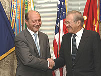 "Comunitatea internaţională poate conta pe sprijinul României în restabilirea păcii în Liban şi pentru a garanta securitatea Israelului", a subliniat Traian Băsescu. El a făcut aceste declaraţii la Washington unde ieri a discutat şi cu ministrul american al apărării, Donald Rumsfeld. Preşedintele Traian Băsescu a declarat că i-a solicitat ministrului american al apărării majorarea cu 50% a asistenţei financiare americane pentru armata română. Şeful statului a precizat că partea americană avea în vedere o majorare cu 20% a asistenţei pentru armata română pentru anul 2007 dar nu se ştie dacă şi solicitarea Bucureştiului a fost agreată de partea americană. Problema energiei Preşedintele Traian Băsescu a participat şi la dezbaterea "Energia caspică şi coridorul Mării Negre".