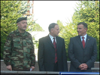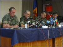 Comandantul Componentei Terestre Aliate Madrid, generalul de divizie Caietano Miro Valls, care conduce aceste exerciţii, respinge orice acuzaţii în acest sens. "Niciodată exerciţii de felul celora desfăşurate acum nu au vreo tangenţă nici cu situaţia reală din ţara gazdă, nici cu realitatea din oricare altă ţară", a declarat generalul Caietano Miro Valls. "Subliniez o dată în plus că aceste două exerciţii nu se raportează în nici un fel la nici unul dinte evenimentele curente dintr-o ţară sau alta. Aceste exerciţii au scopul de a promova pacea şi stabilitatea prin intermediul dialogfului şi cooperării, iar obiectivul principal este de a consolida capacitatea de a opera împreună în operaţiunile de menţinere a păcii şi stabilităţii în lumea întreagă" - a mai spus într-o conferinţă de presă cu prilejul evenimentului generalul spaniol Caietano Miro Valls. | LEGĂTURI Transnistria se declară ameninţată de exerciţiile NATO 12 Septembrie, 2006 | Ştiri Şeful Comitetului SUA pentru NATO critică Moscova08 Septembrie, 2006 | Ştiri Ministrul Apărării despre exerciţiile NATO în Republica Moldova06 Septembrie, 2006 | Ştiri Proteste împotriva exerciţiilor militare NATO04 Septembrie, 2006 | Ştiri LEGĂTURI LA SITE-URI EXTERNE BBC nu este răspunzător de conţinutul paginilor de Internet ce nu îi aparţin | |||||||||||||||||||||||||||||||||||||||||||