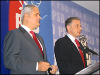 Preşedintele PSD, Mircea Geoană, a spus că dosarul său ar fi fost trimis în judecată intenţionat înainte de Congreul PSD din decembrie, la care se va alege conducerea partidului. În timp ce unii social-democraţi au sugerat că fostul prim ministru ar trebui să se autosuspende din partid până la clarificarea anchetei penale, o serie de lideri ai formaţiunii şi-au exprimat susţinerea faţă de preşedintele formaţiunii. Senatorul PSD, Vasile Dâncu a declarat la BBC că cel mai probabil Adrian Năstase nu va intra în cursa pentru şefia partidului: "Un om inteligent face deosebire între gesturile de solidariate simbolică, pe care orice organizaţie le presupune şi modul în care se promovează pe sine această organizaţie". "Să sperăm că, dacă începutul acestei anchete ar fi putut fi influenţat politic, decizia nu va avea nici o legătură cu politica şi atunci vom vedea adevărul. Nu ne putem pronunţa asupra vinovăţiei lui Adrian Năstase, aşa cum ne putem pronunţa asupra nevinovăţiei lui", a mai spus Vasile Dâncu. | LEGĂTURI Adrian Năstase trimis în judecată13 Noiembrie, 2006 | Ştiri Adrian Năstase audiat la Direcţia Naţională Anticorupţie11 Iulie, 2006 | Ştiri Comisia de cercetare a averilor şi cazul 'Mătuşa' 24 Martie, 2006 | Ştiri Cererea de percheziţie a caselor lui Adrian Năstase-respinsă07 Martie, 2006 | Ştiri DNA a prezentat acuzaţiile aduse lui Adrian Năstase16 Februarie, 2006 | Ştiri LEGĂTURI LA SITE-URI EXTERNE BBC nu este răspunzător de conţinutul paginilor de Internet ce nu îi aparţin | |||||||||||||||||||||||||||||||||||||||||||