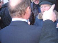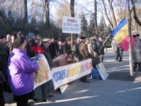 Care a fost însă reacţia cetăţenilor care aşteptau la coadă la Consulatul României? Au ei încredere în promisiunile Preşedintelui Băsescu? În general reacţiile cetăţenilor la promisiunile Preşedintelui Băsescu au fost pozitive. Un demonstrant, Oleg Brega, a scandat lozinci critice la adresa conducătorilor dar şi a populaţiei de pe ambele maluri ale Prutului.