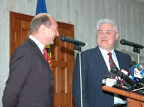 Preşedintele României, Traian Băsescu, s-a întâlnit marţi la Chişinău cu preşedintele Republicii Moldova, Vladimir Voronin, în cadrul unei vizite fulger anunţate în mod surprinzător cu mai puţin de 24 de ore înainte. În declaraţiile oficiale de după întrevedere, Preşedintele Vladimir Voronin a spus că a discutat cu Traian Băsescu un şir întreg de probleme bilaterale, inclusiv despre situaţia ce s-a creat după introducerea de la 1 ianuarie de către România a regimului de vize pentru cetăţenii Republicii Moldova. Iar problema deschiderii a încă două consulate ale României în Republica Moldova, la Bălţi şi Cahul, cel puţin, provizoriu, pare a fi rezolvată. Vladimir Voronin. "Situaţia nu este normală. Situaţia trebuie deblocată şi imediat trebuie hotărâte problemele ce nu permit ca să fie deblocată situaţia. De aceea am hotărât ca temporar, de urgenţă, să fie deschise două birouri consulare la Bălţi şi Cahul care vor active în aceste localităţi până la rezolvarea problemei", a declarat Vladimir Voronin. 530 de mii de cereri de cetăţenie română