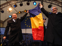 În orice caz, situaţia politică a României la puţin peste o lună de la aderarea la Uniunea Europeană este fără precedent: preşedintele ameninţat cu suspendarea, guvernul, rămas minoritar, ameninţat cu o moţiune de cenzură şi toate acestea la doar trei luni de la alegerile pentru Parlamentul European. În aceste condiţii, este îndoielnic că agenda legislativă obişnuită, dar extrem de importantă, va putea fi dezbătută în condiţii normale. Preşedintele Traian Băsescu a avertizat deja că România riscă declanşarea clauzei de salvgardare în justiţie, dacă Parlamentul nu adoptă de urgenţăşi într-o versiune severă Legea Agenţiei Naţionale de Integritate (ANI). ANI este o instituţie menită să verifice averile demnitarilor şi a fost cerută cu insistenţă de Uniunea Europeană. Declanşarea clauzei de salvgardare în justiţie ar avea ca efect, între altele, nerecunoaşterea de către UE a deciziilor justiţiei din România. Aşteptăm comentarii la rom.dept@bbc.co.uk Încercarea disperată a unei părţi a clasei poltice de a-l înlătura pe Băsescu, este una de a opri schimbările majore, acţiunile acestuia fără precedent, şi anume : 1) Sprijin pentru numirea unui ministru de justiţie independent, pentru reformele acestuia: proiecte de legi anticorupţie; 2) Aprobarea bazei militare a SUA în România; 3) Eliminarea ministrului PNL şi dizident al apărării; 4) Menţinerea trupelor în Irak; 5) Atenţionarea asupra acţiunii păguboase ale "băieţilor deştepţi" în distribuirea energiei elctrice; 6) Atenţionarea asupra posibilităţii infiltrării oligarhiei ruse în exploatarea resurselor energetice româneşti; 7) Scoaterea dosarelor Securităţii; 8) Înfiinţarea Comisiei Tismăneanu şi condamnarea oficială a regimului comunist; 9) O critică permanenta al guvernului condus de Tăriceanu şi cererea repetată de alegeri anticipate; 10) Diponibilizarea lui Stolojan, care înfiinţează cu Stoica PLD; 11) Acţiuni pe plan intern şi extern pentru aderarea României la UE şi reuşita; Ca urmare a punctelor 1-11,rezultă păcatul de NEIERTAT :12) De a fi cel mai agreeat politician din România! Nu există în România o instituţie care adăposteşte atâta impostură. Corect s-a spus că este "puroiul" ţării. Câte bube o avea Băsescu, dar credeţi că putem rata o asemenea ocazie să dăm o palmă binemeritată clasei politice actuale? Sunt aceiaşi de 17 ani care sub diferite denumiri se rotesc şi fac cum fac şi tot acolo ajung. | LEGĂTURI Consultări privind suspendarea preşedintelui01 Februarie, 2007 | Ştiri Modificări la Legea referendumului30 Ianuarie, 2007 | Ştiri Ce este suspendarea din funcţie a Preşedintelui României21 Ianuarie, 2007 | Ştiri LEGĂTURI LA SITE-URI EXTERNE BBC nu este răspunzător de conţinutul paginilor de Internet ce nu îi aparţin | |||||||||||||||||||||||||||||||||||||||||||