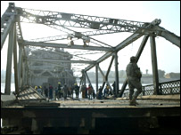 Corespondentul BBC la Bagdad Jim Muir spune că atacul reprezintă una dintre cele mai grave breşe în sistemul de securitate instituit de forţele americane şi irakiene în centrul Bagdadului unde se află cele mai importante instituţii ale ţării. "Întrebarea pe care muţi oameni şi-o vor pune este cum s-a reuşit introducerea unei bombe într-o clădire care are un dispozitiv propriu de siguranţă iar pentru a ajunge până acolo trebuie să treci prin multe alte filtre aflate uneori la doar câţiva metri distanţă unele de altele", spune Jim Muir. Un pod distrus Tot joi un pod peste fluviul Tigru a fost distrus într-un atac cu bombă. Martorii au descris cum explozibilul amplasat într-un camion a fost detonat iar participanţii la trafic au fost proiectaţi în apă.