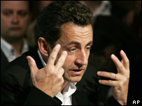 În vârstă de 52 de ani, Nicolas Sarkozy este liderul Uniunii pentru o Mişcare Populară (UMP), partid de centru dreapta care guvernează din 2002. Fost ministru de interne şi al finanţelor în ultimii cinci ani, Nicolas Sarkozy este cunoscut ca un adept al reformelor de piaţă de tip anglo-saxon, dar şi un luptător împotriva imigraţiei necontrolate. El însuşi fiu al unui nobil ungur, refugiat în 1945 de Armata Roşie şi nepot după mamă al unui evreu sefard creştinat din Grecia, Nicolas Sarkozy a antagonizat o bună parte a comunităţilor de imigranţi şi francezi de origine imigrantă. Este căsătorit de două ori şi are trei fii. În 2005 în timpul revoltelor din suburbiile defavorizate, pe vremea când era ministru de interne, Nicolas Sarkozy i-a calificat pe cei se au provocat incidente "scursuri", ceea ce i-a atras numeroase antipatii în mediile imigranţilor, în special a celor proveniţi din nordul Africii. Cunoscut ca o fire colerică, el şi-a atras critici din partea principalei lui contracandidate, Segolene Royal, care l-a acuzat de insulte la adresa ei. Fostul ministru în guvernul Villepin, Azouz Begag l-a acuzat pe Nicolas Sarkozy că acesta l-ar fi ameninţat cu violenţa fizică. Nicolas Sarkozy a fost constant creditat în sondajele din ultima lună cu scoruri între 26 şi 32%, ceea ce îl plasează pe primul loc în intenţiile de vot. Segolene Royal